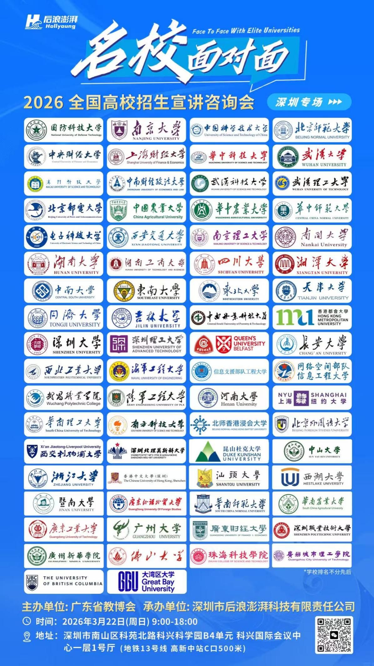 3月21日至22日,由广东教育博览会组委会主办的“名校面对面”广东招生宣讲咨询会在广州中国大酒店和深圳科兴国际会议中心相继举行。河南大学深圳研究院代表学校参会,与众多知名高校一同面向广东考生及家长开展招生宣传与咨询服务。