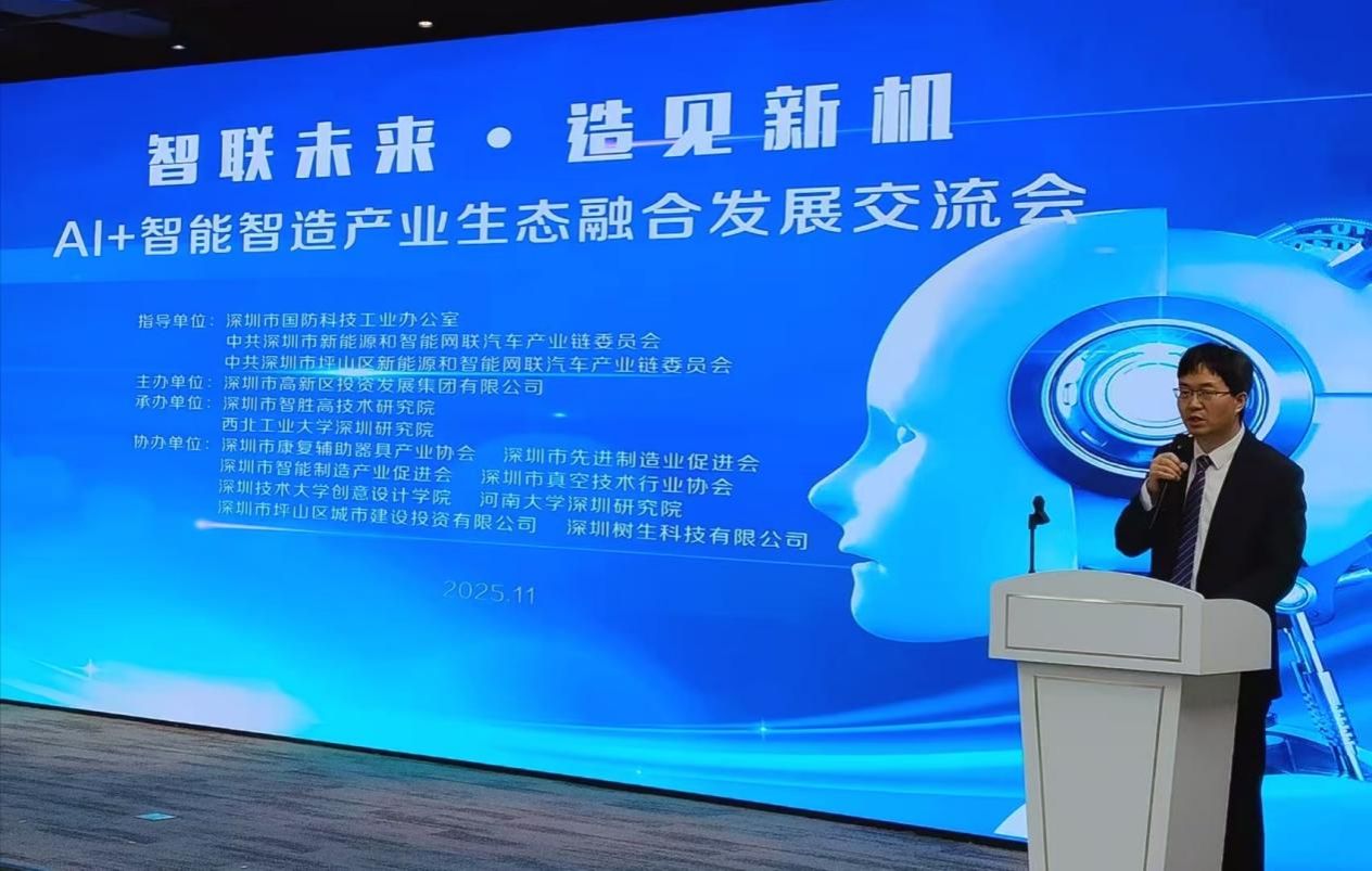 以“智联未来、造见新机”为主题的AI赋能智能智造产业生态融合发展交流会,11月12日在坪山区城投智园隆重举行。本次交流会由深圳市国防科技工业办公室、中共深圳市新能源和智能网联汽车产业链委员会、中共深圳市坪山区新能源和智能网联汽车产业链委员会指导,深圳市高新区投资发展集团有限公司主办,深圳市智胜高技术研究院、西北工业大学深圳研究院联合承办,河南大学深圳研究院、深圳市康复辅助器具产业协会、深圳市先进制造业促进会、深圳市智能制造产业促进会、深圳市真空技术行业协会、深圳市技术大学创意设计学院、深圳市坪山区城市建设投资有限公司、深圳树生科技有限公司等单位共同协办。