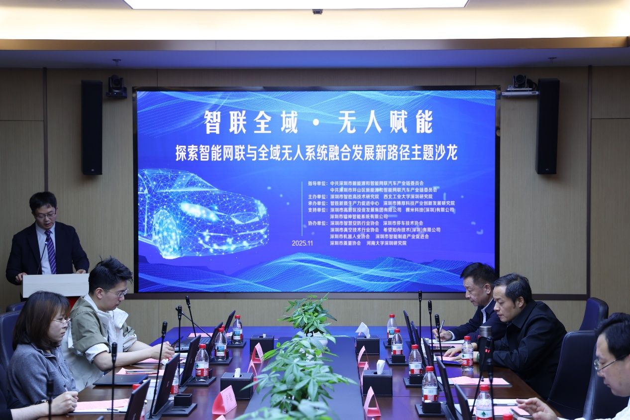 11月30日,以“智联全域・无人赋能”为主题的探索智能网联与全域无人系统融合发展新机遇、新路径主题沙龙在深圳市坪山区城投芯时代大厦举办。本次沙龙由中共深圳市新能源和智能网联汽车产业链委员会、中共深圳市坪山区新能源和智能网联汽车产业链委员会指导,深圳市智胜高技术研究院、西北工业大学深圳研究院联合主办,智胜新质生产力促进中心、深圳市博厚科技产业创新发展研究院共同承办,深圳市高新区投资发展集团有限公司、稞米科技(深圳)有限公司、深圳市镭神智能系统有限公司提供支持,希望知舟技术(深圳)有限公司、河南大学深圳研究院等单位共同协办。